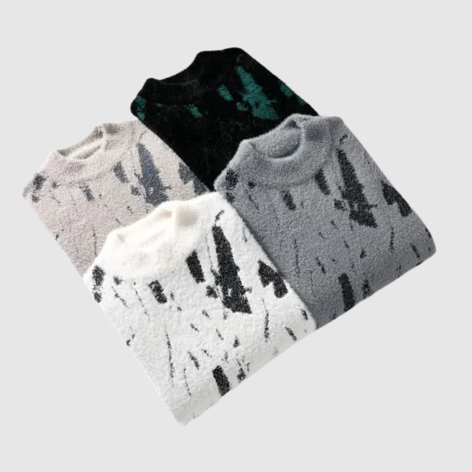 Nowoczesny i atrakcyjny sweter z abstrakcyjnym wzorem, który przypomina pędzel. Miękka jakość zapewnia komfort przez cały dzień, podczas gdy design dodaje unikalny artystyczny akcent do zimowej garderoby.