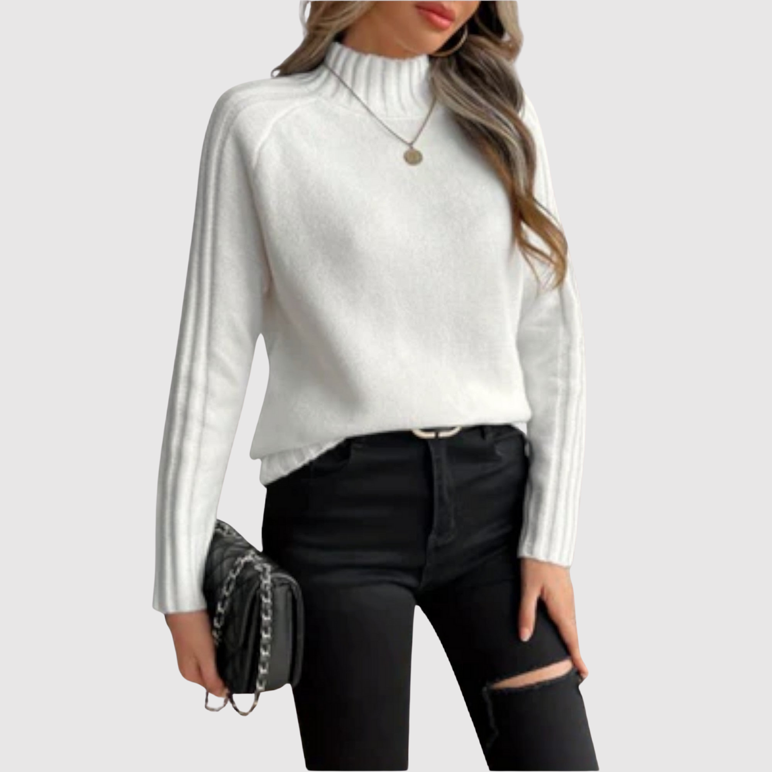 Nora – Klasyczny sweter z wysokim kołnierzem