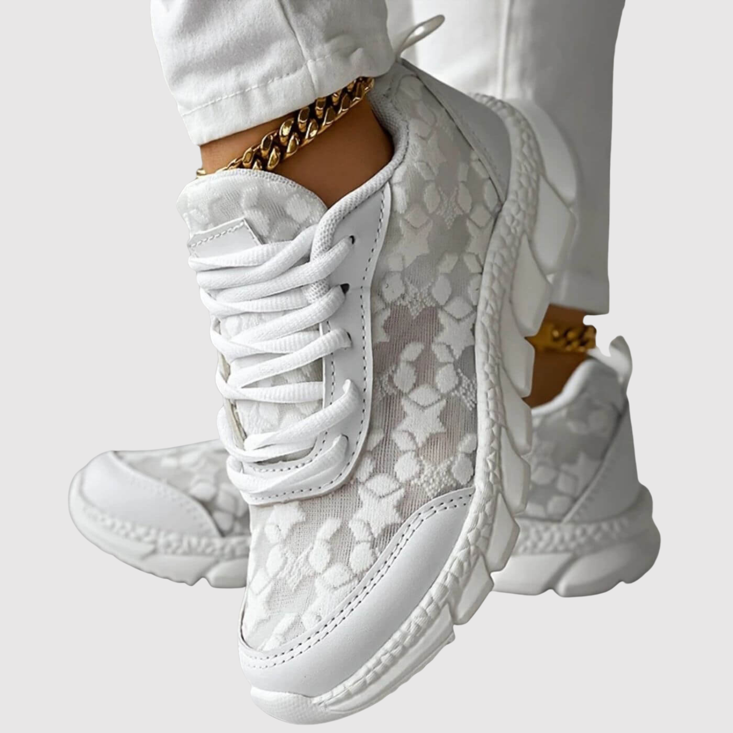 Sneakersy Klara łączą komfort z kobiecym i stylowym wyrazem. Ich lekki design i eleganckie koronkowe detale sprawiają, że są idealne dla tych, które pragną zarówno komfortu, jak i unikalnego wyglądu w codziennym życiu.