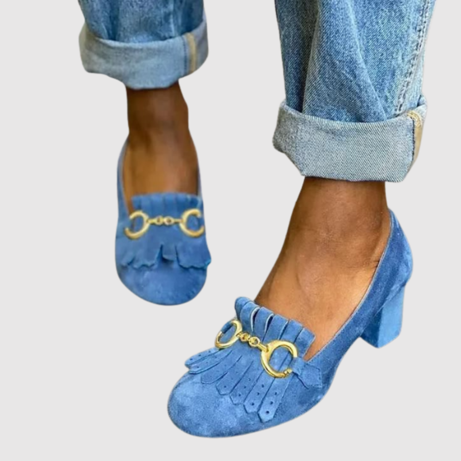 Teodora - Obcasy z frędzlami i złotym zapięciem