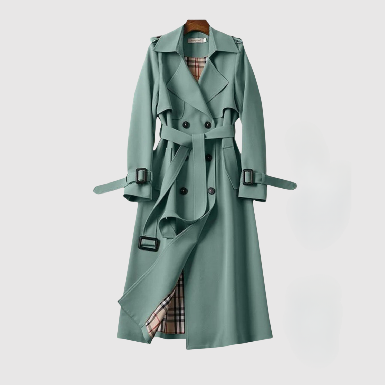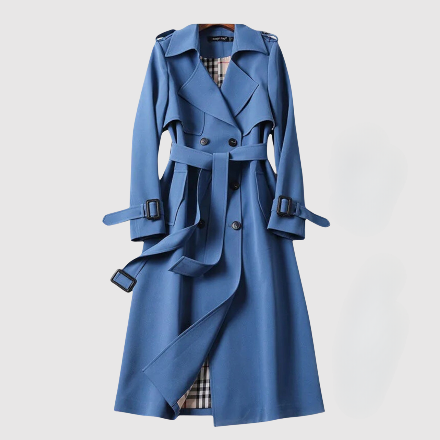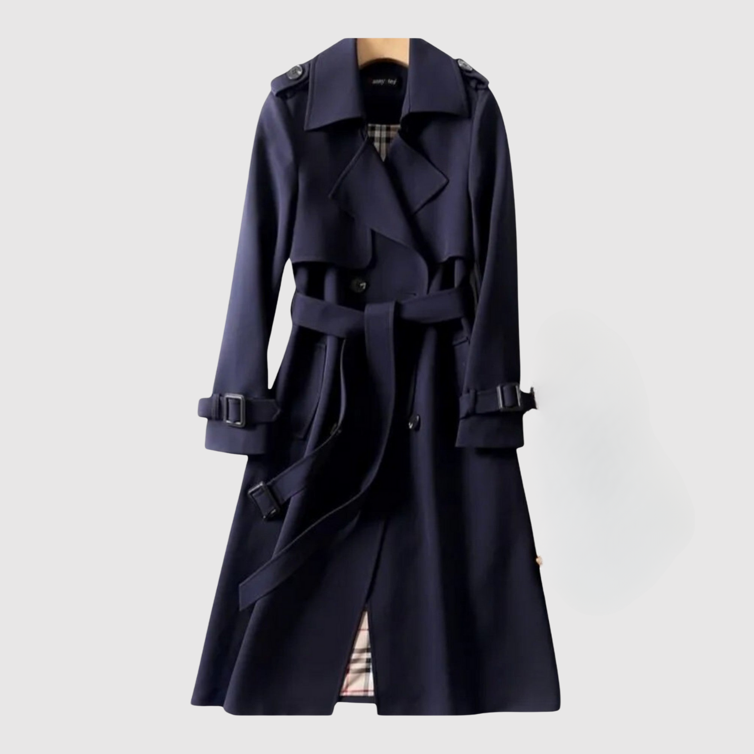• Klasyczny design płaszcza z paskiem w talii