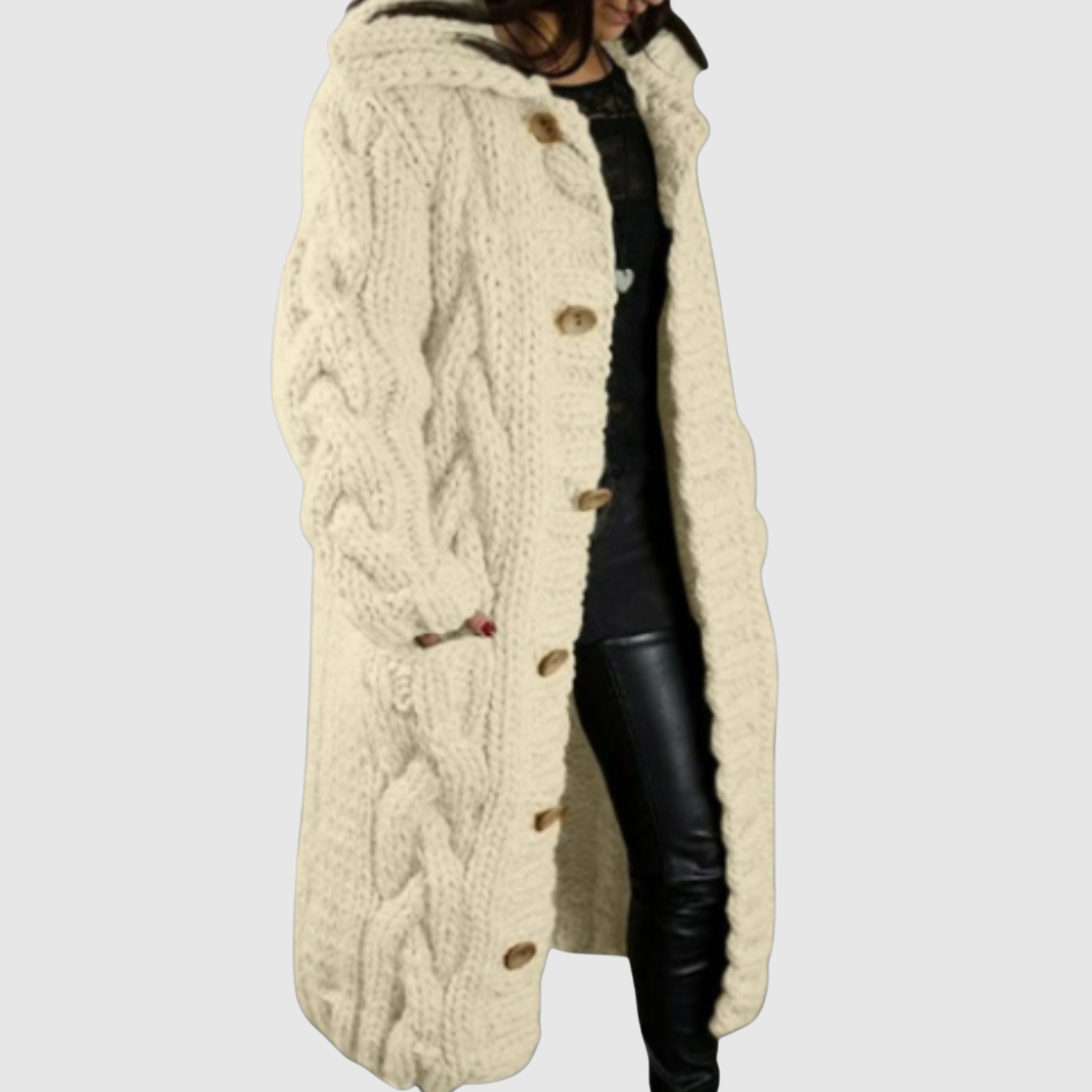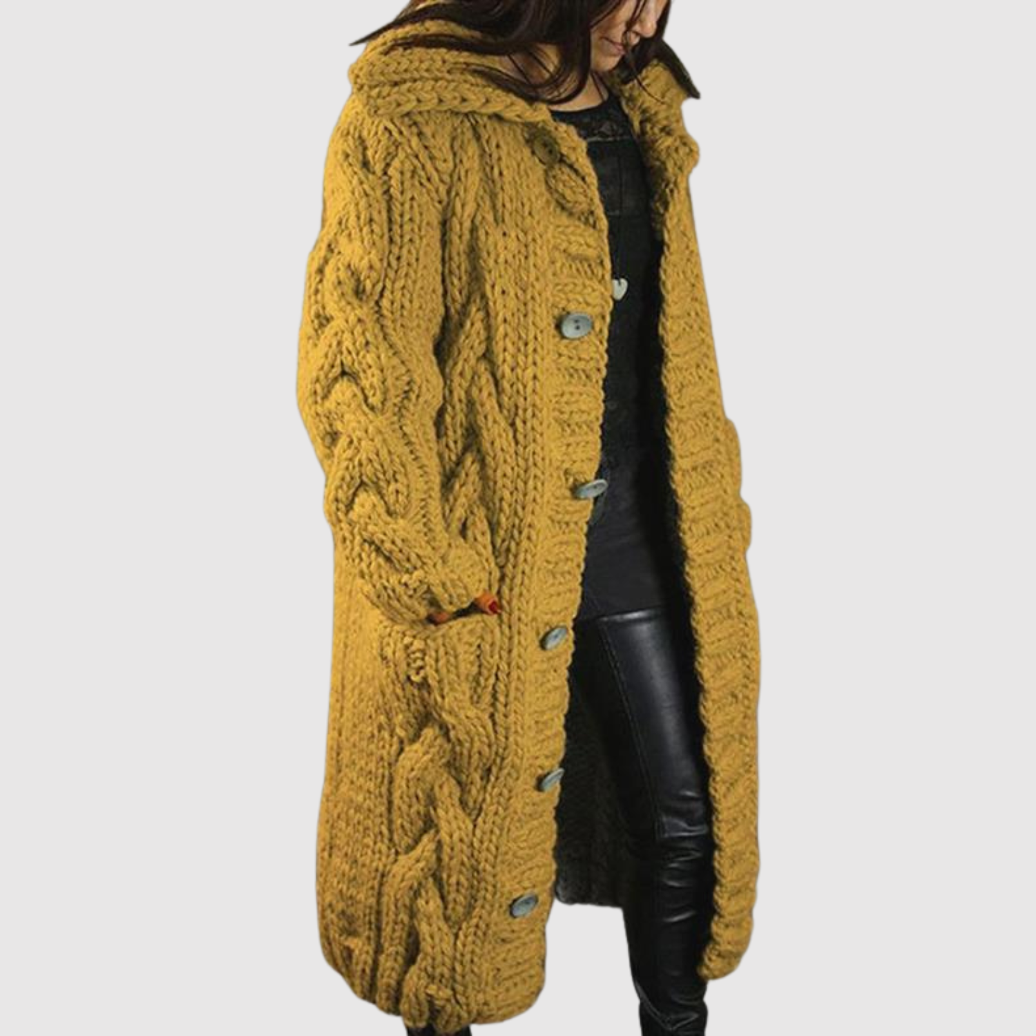 Jelena - Długi sweterkowy płaszcz z nowoczesnym reliefem