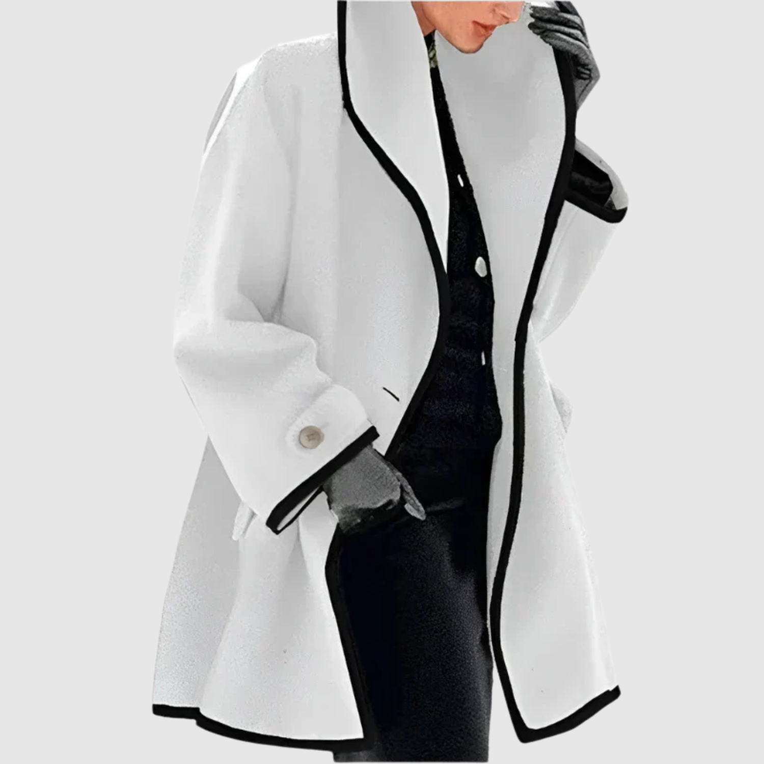 Jelena - Oversize damski płaszcz z kontrastowymi brzegami