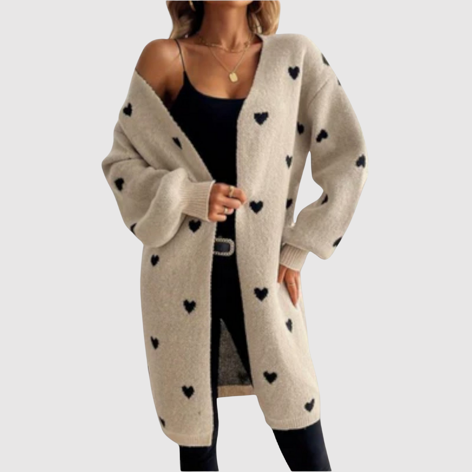 Jelena – Długi pleciony kardigan z ciepłymi rękawami