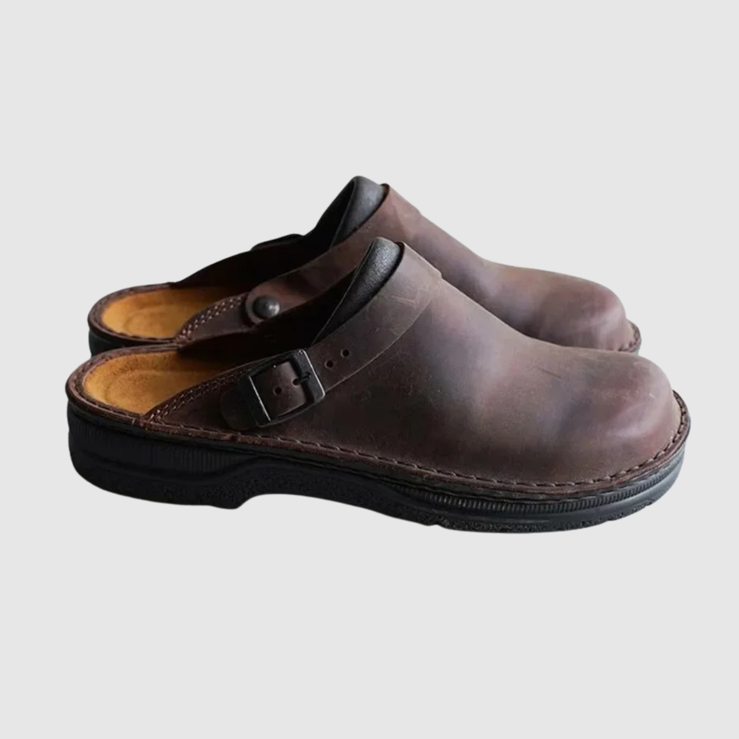 Oskar – Komfortowe skórzane klapki z regulowanym paskiem