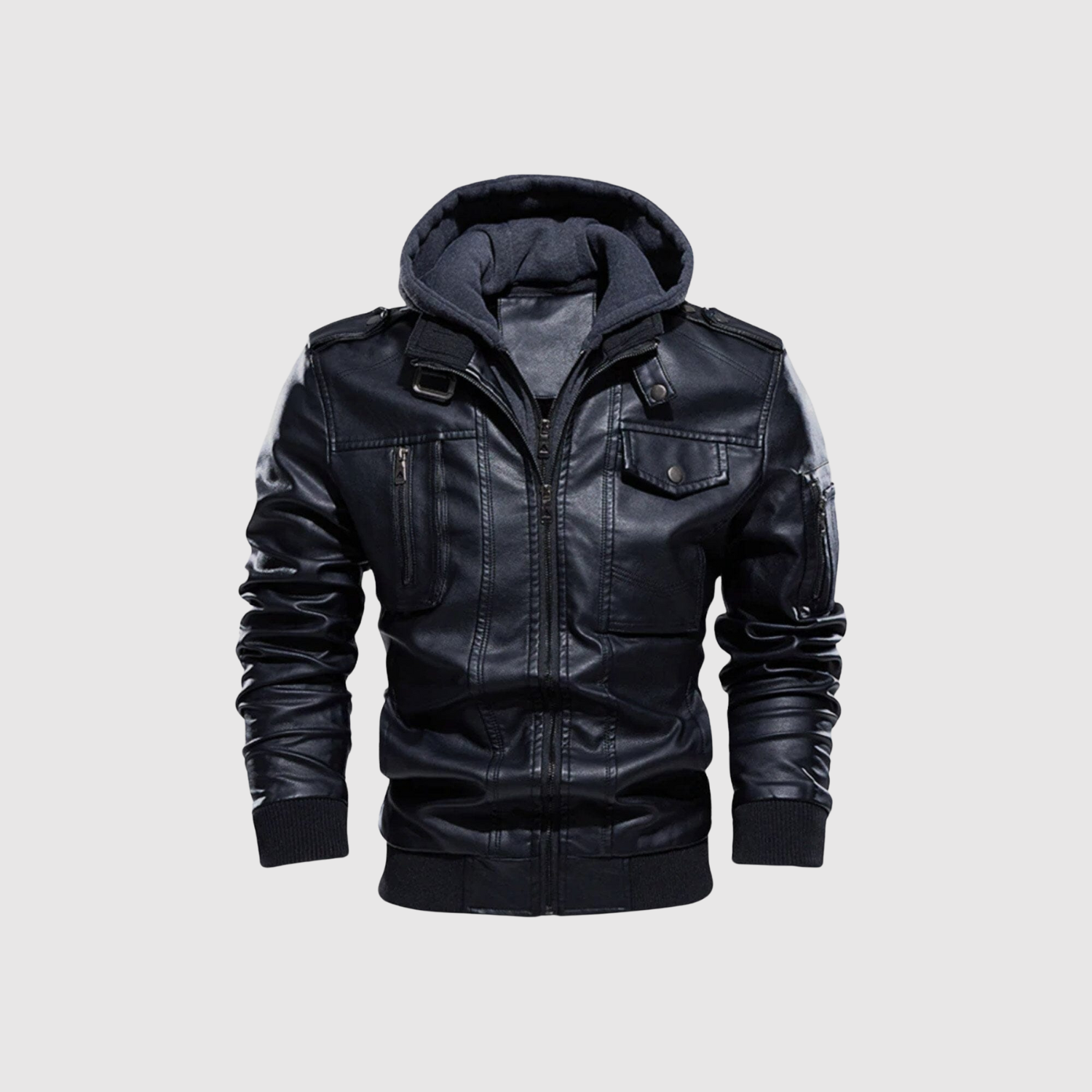 Marek – Męska kurtka z eko skóry z kapturem