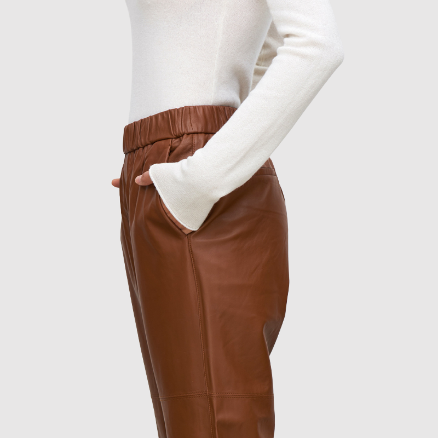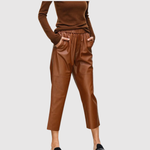 Mira – Spodnie z materiału skórzanego z elastycznym pasem