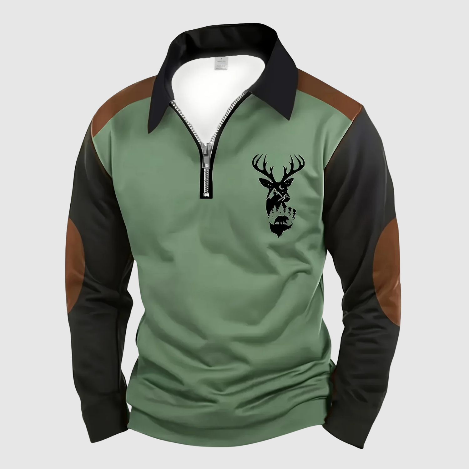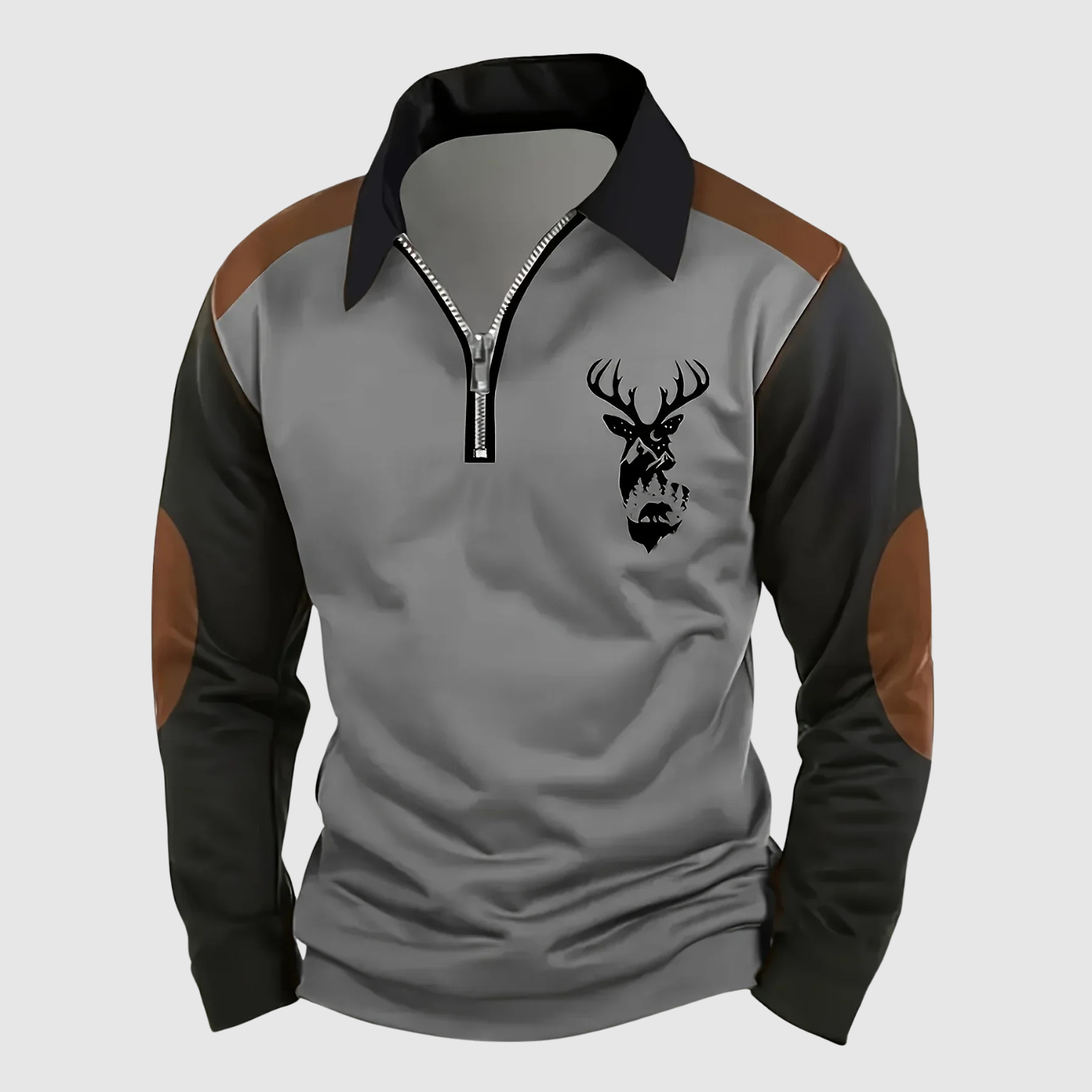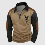 Adrian - Sportowo elegancki sweter z zamkiem i motywem jelenia