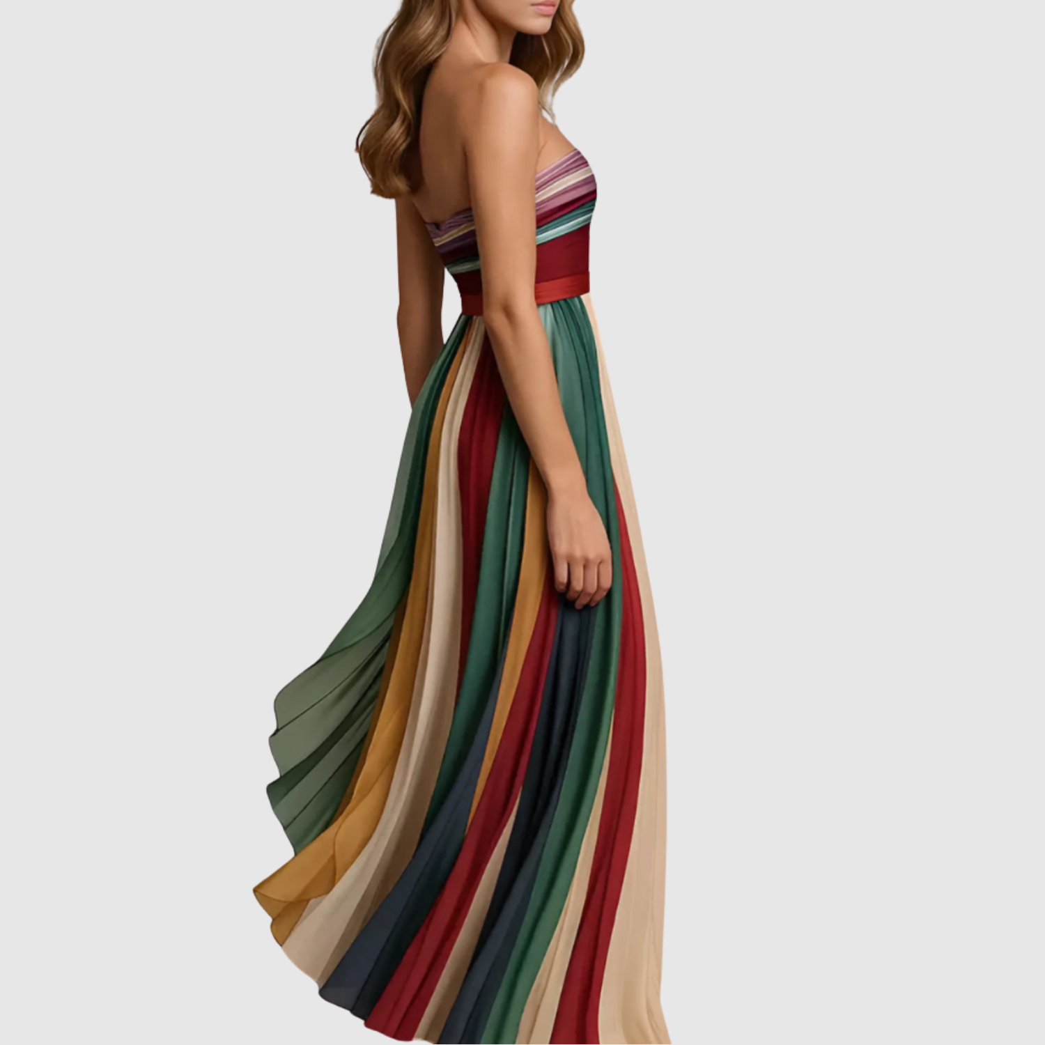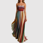 Ta sukienka zachwyca wielokolorowym designem i zwiewnym krojem, który pięknie układa się przy każdym kroku. Lżejszy materiał i luźna sylwetka czynią ją idealną na letnie spacery, wakacje i codzienne wydarzenia. Tworzy nowoczesny, świeży i kobiecy wygląd.