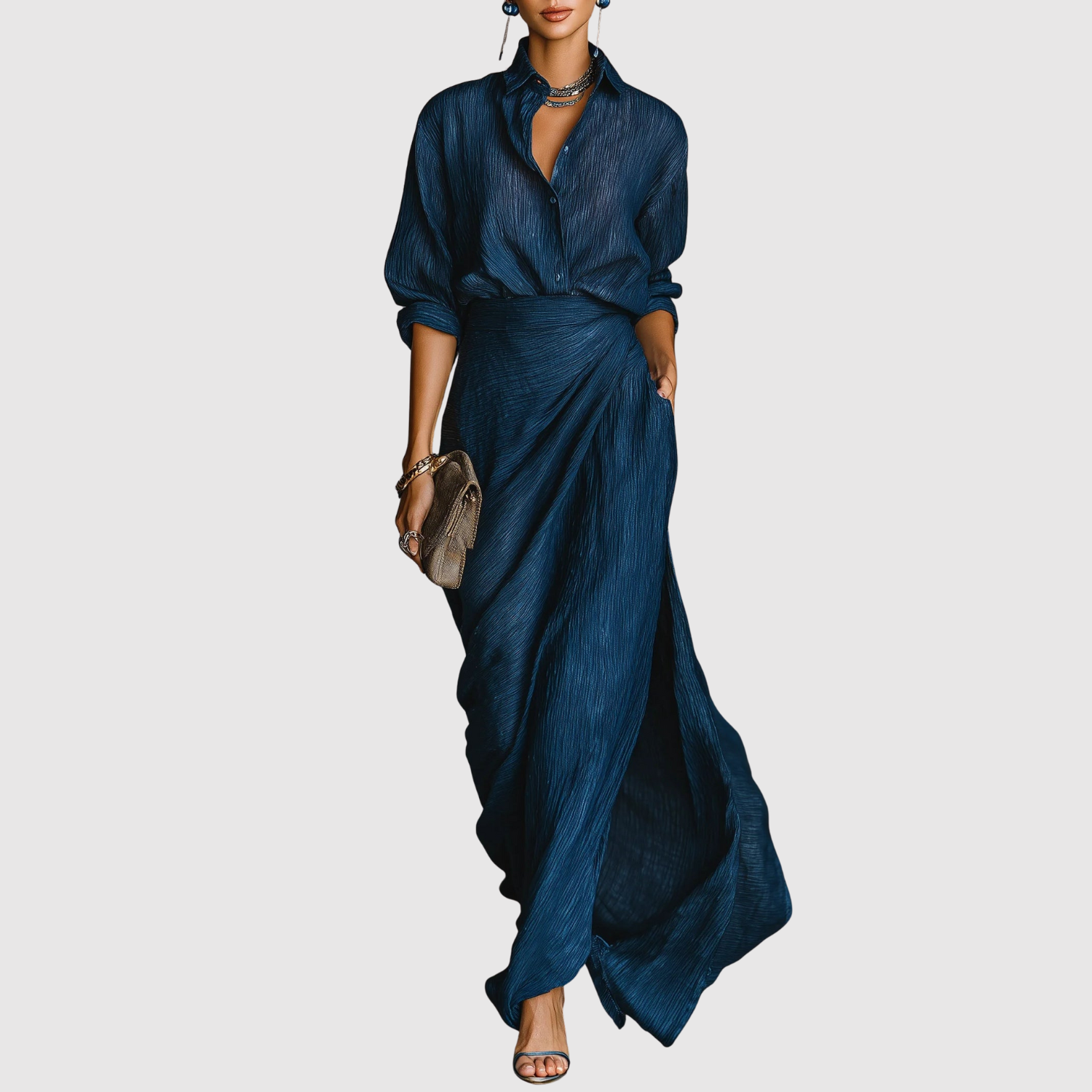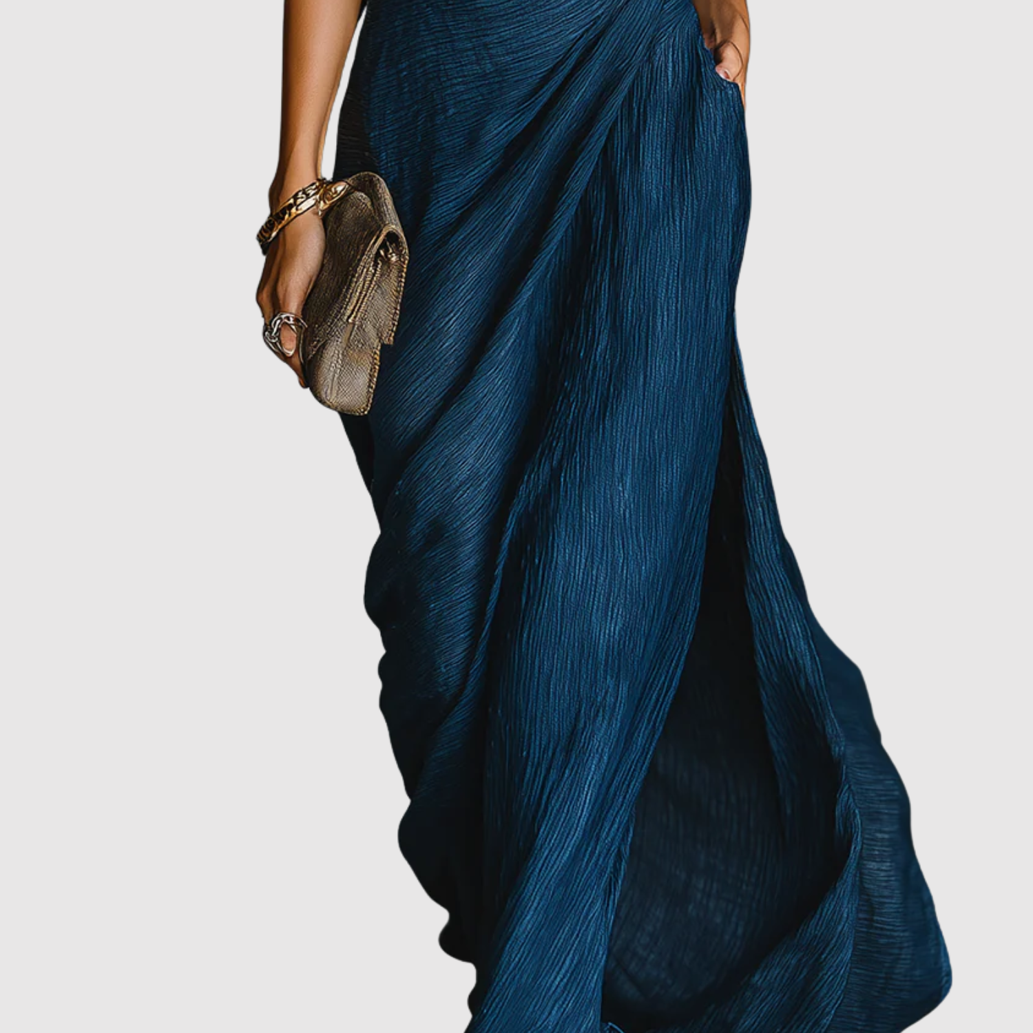 Ta długa sukienka łączy lekkość, elegancję i nowoczesną sylwetkę. Delikatnie podkreśla talię i swobodnie opada, tworząc efekt wysmuklenia. Idealna na co dzień, na wyjścia i na letnie wieczory. Jej ponadczasowy krój sprawia, że pasuje do wielu stylizacji.