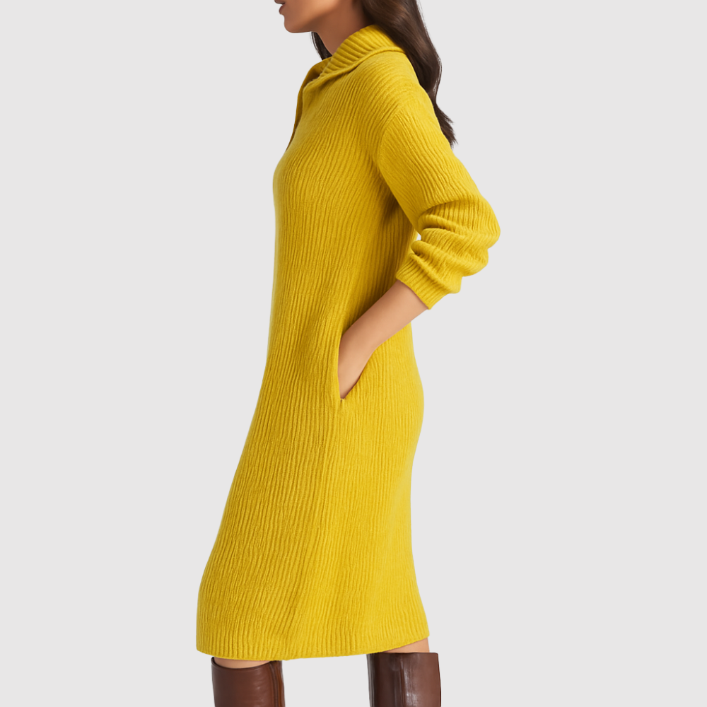 Miękka, ciepła i stylowa – sukienka przeznaczona na nowoczesne jesienne i zimowe dni. Podkreśla sylwetkę, nie opinając jej, i zapewnia komfort przez cały dzień.