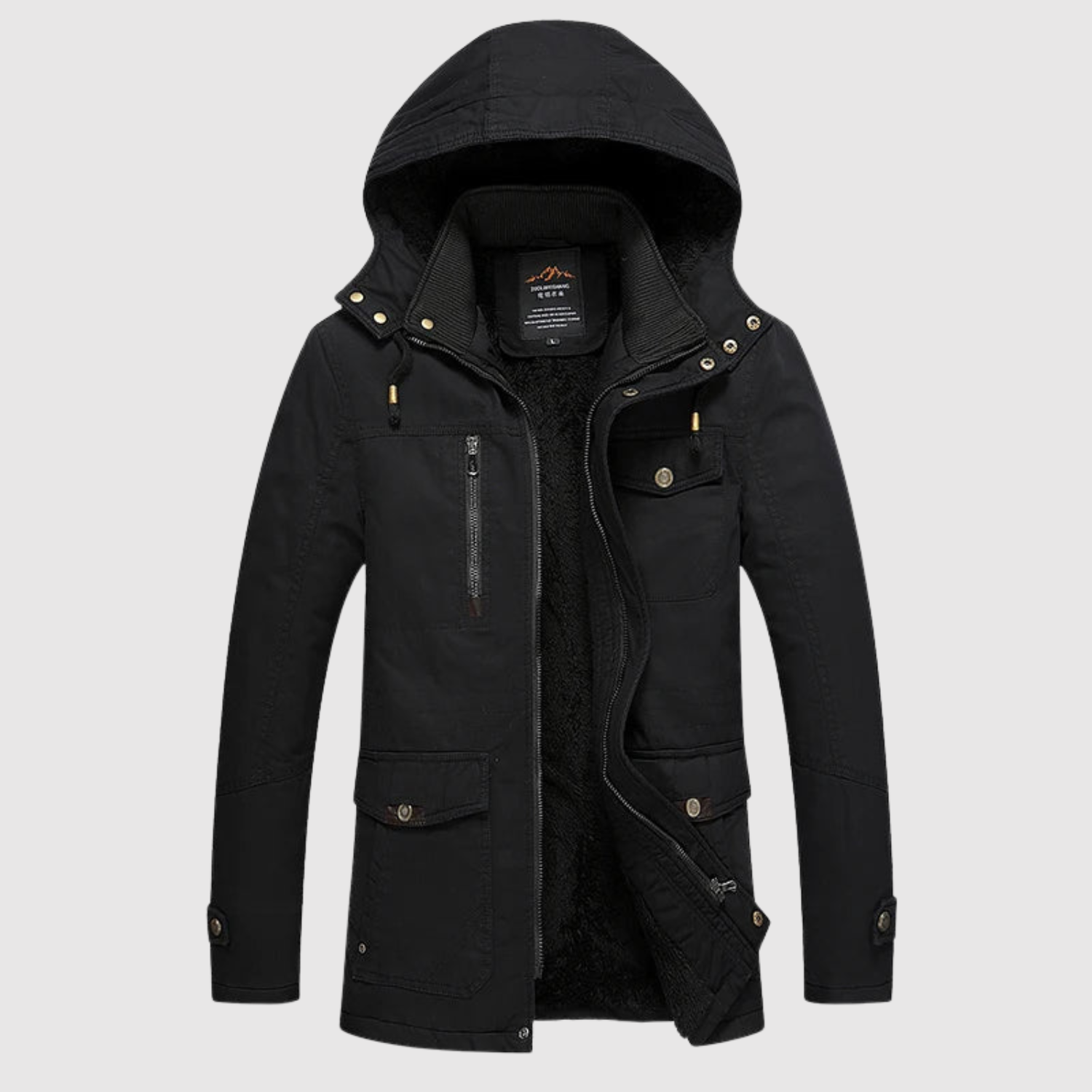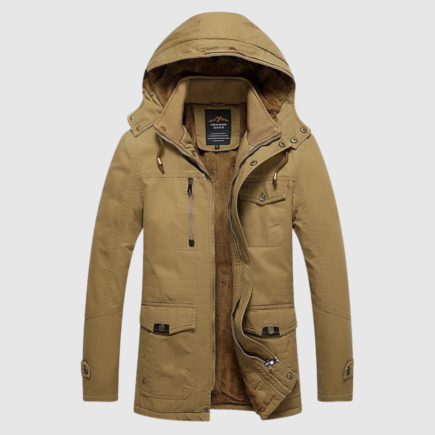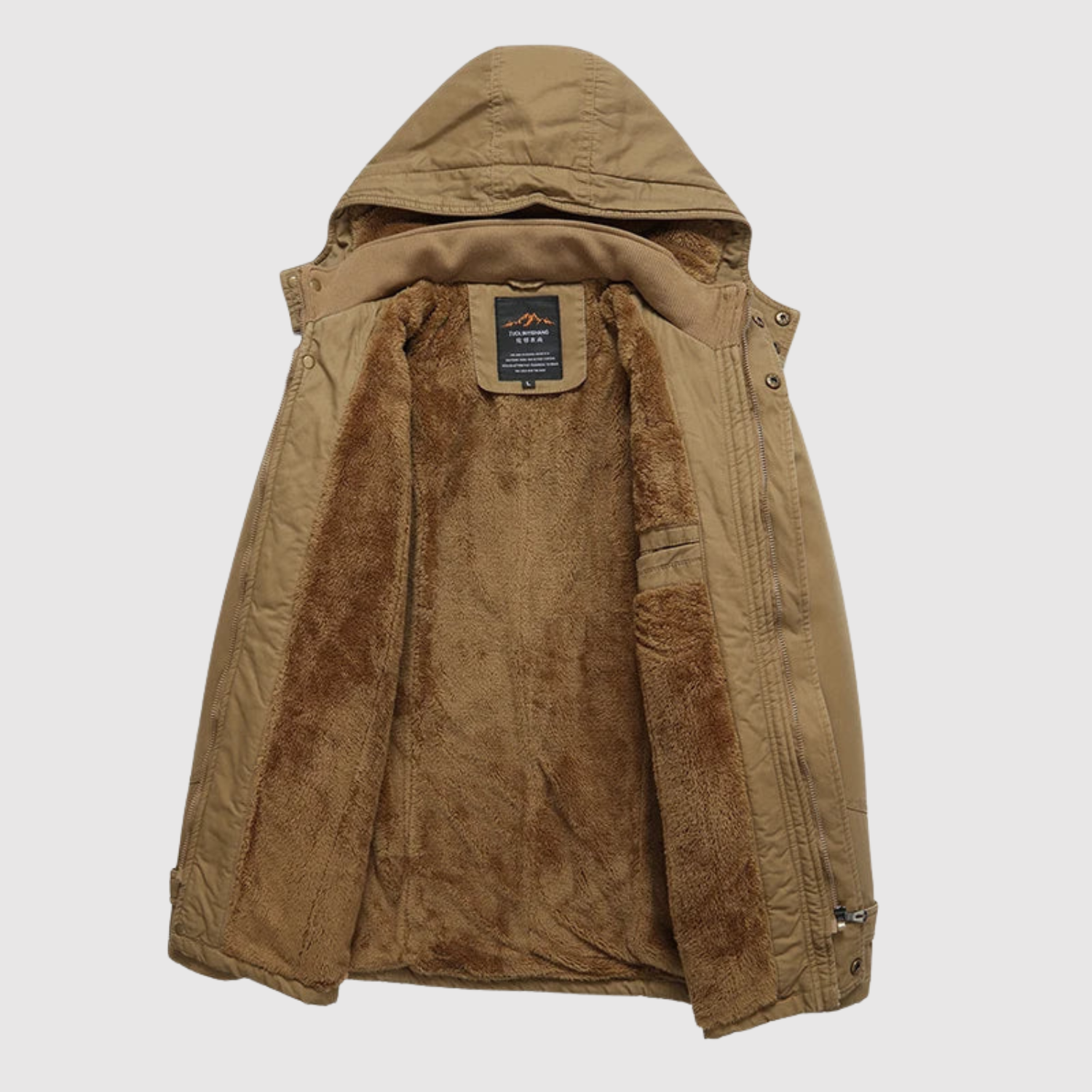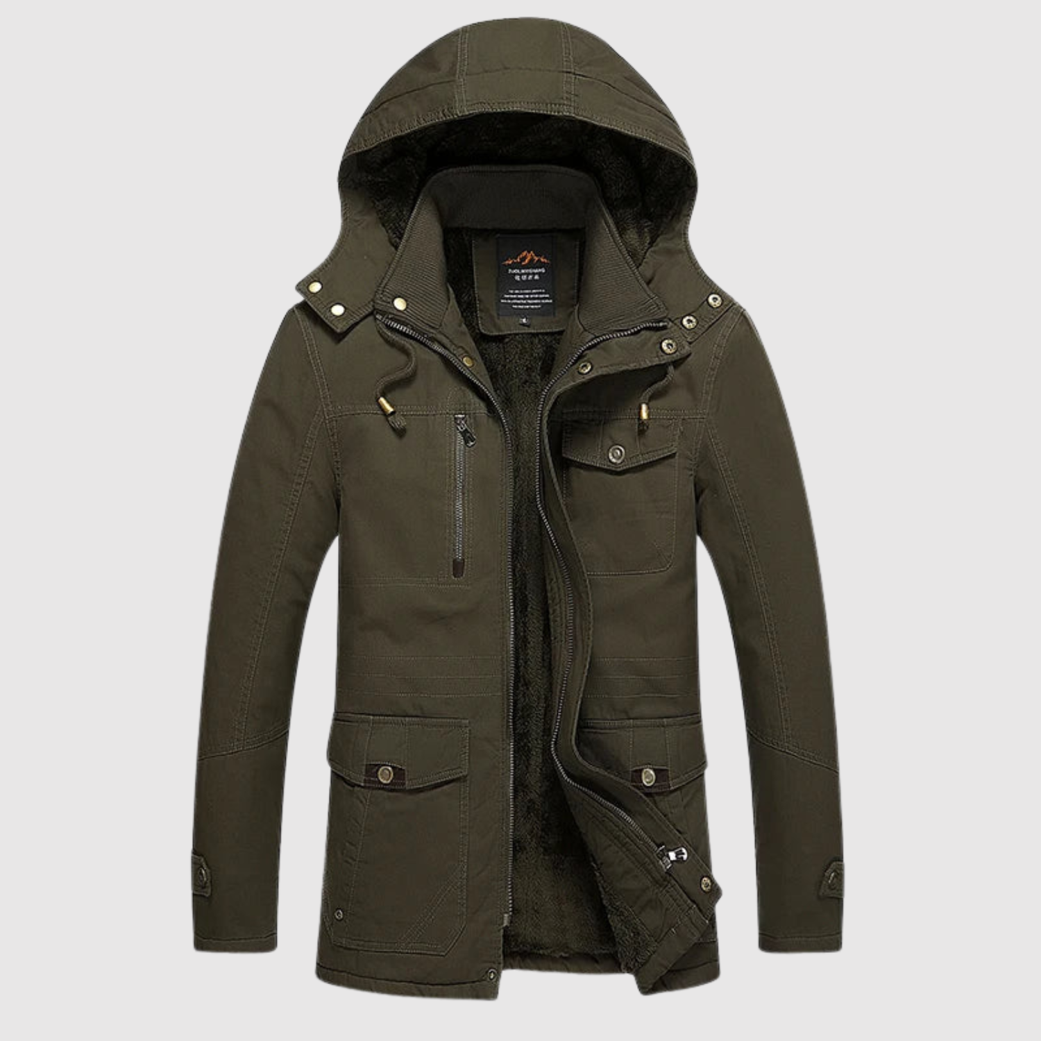 Marek – Wełniana zimowa kurtka z paskiem i kapturem