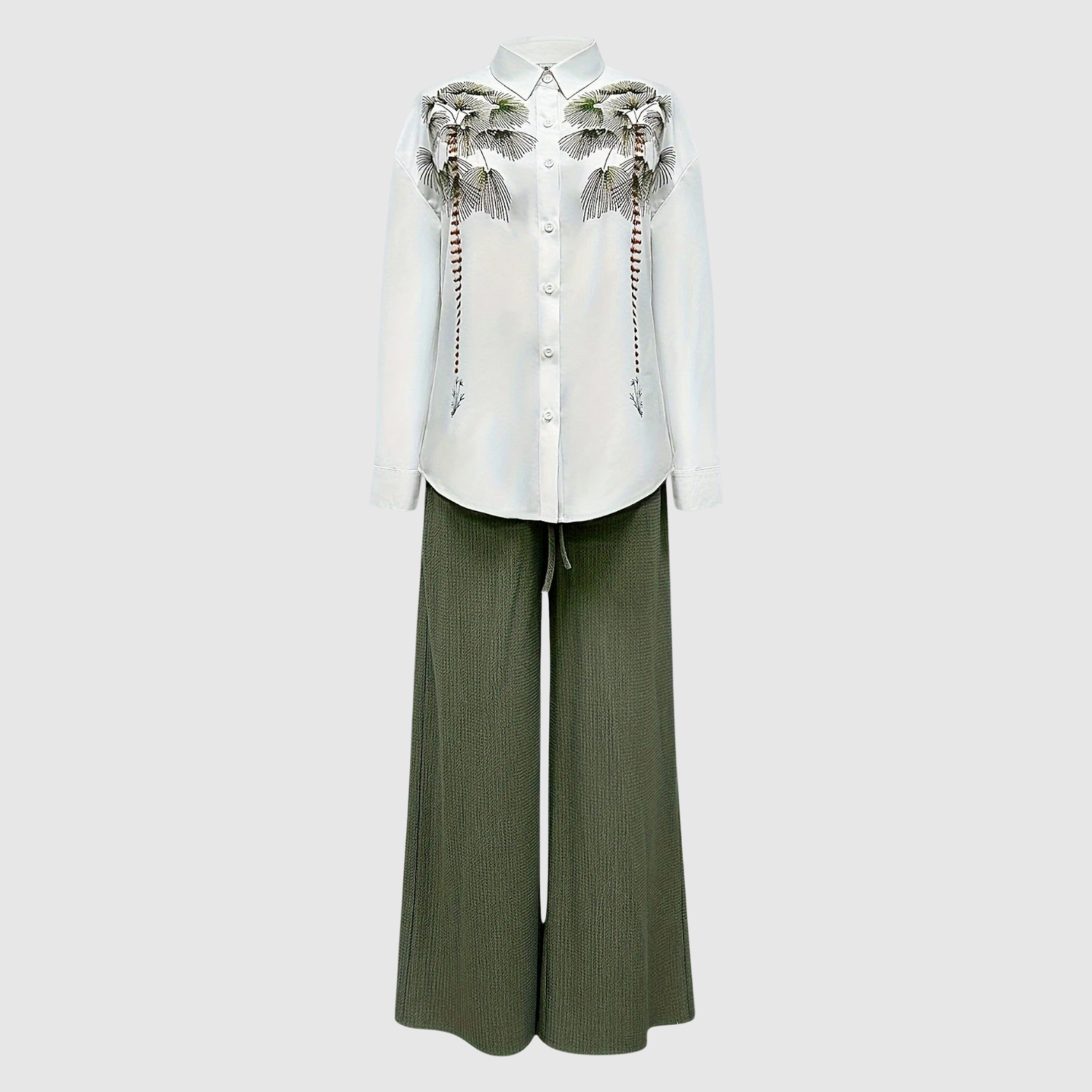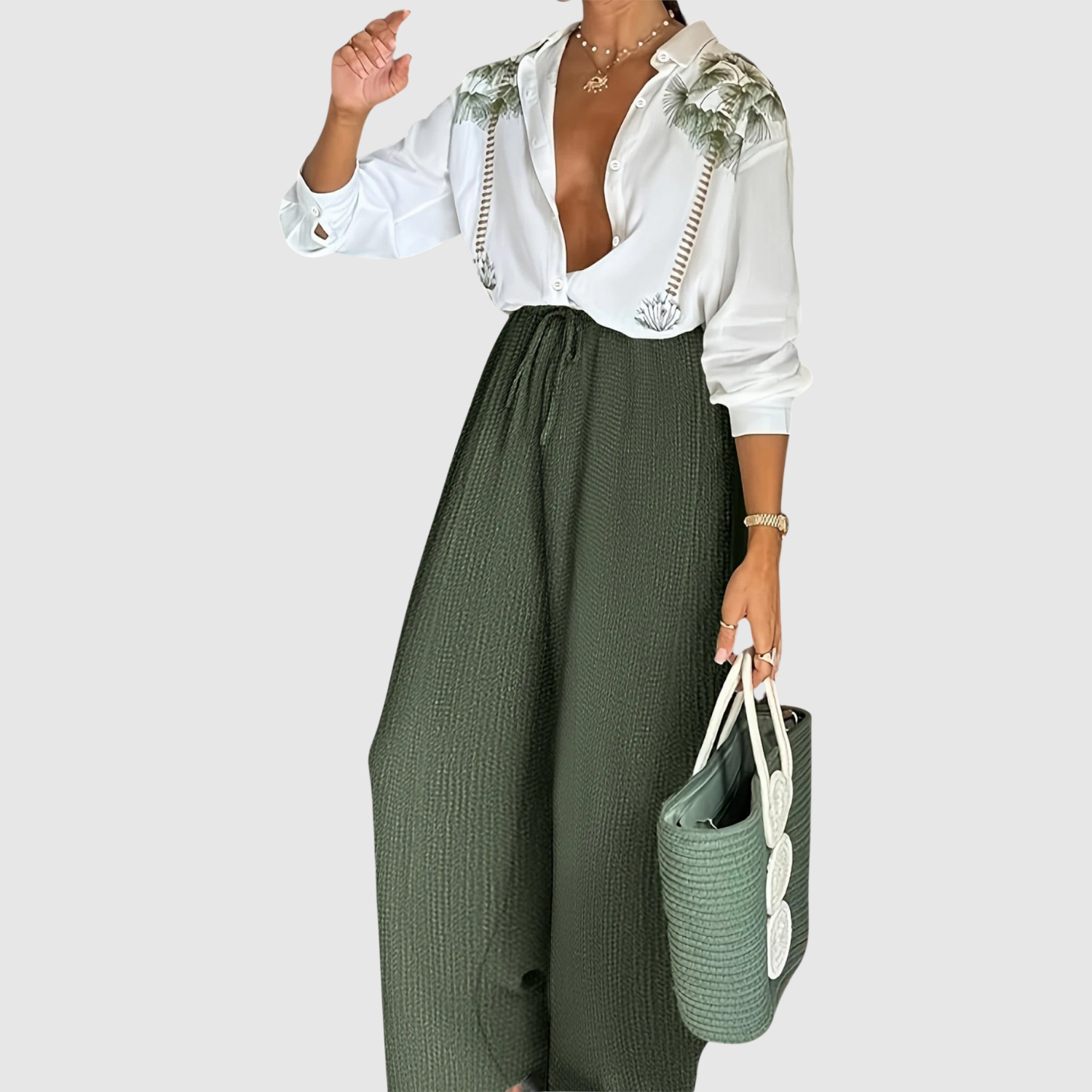Natálie – Elegancki komplet z koszulą i szerokimi spodniami