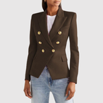 Ta dwukolorowa marynarka z wyrazistymi złotymi guzikami nadaje luksusowy wygląd każdej garderobie. Dopasowany krój podkreśla sylwetkę, podczas gdy ponadczasowe detale sprawiają, że jest idealna zarówno na co dzień, jak i na uroczyste okazje.