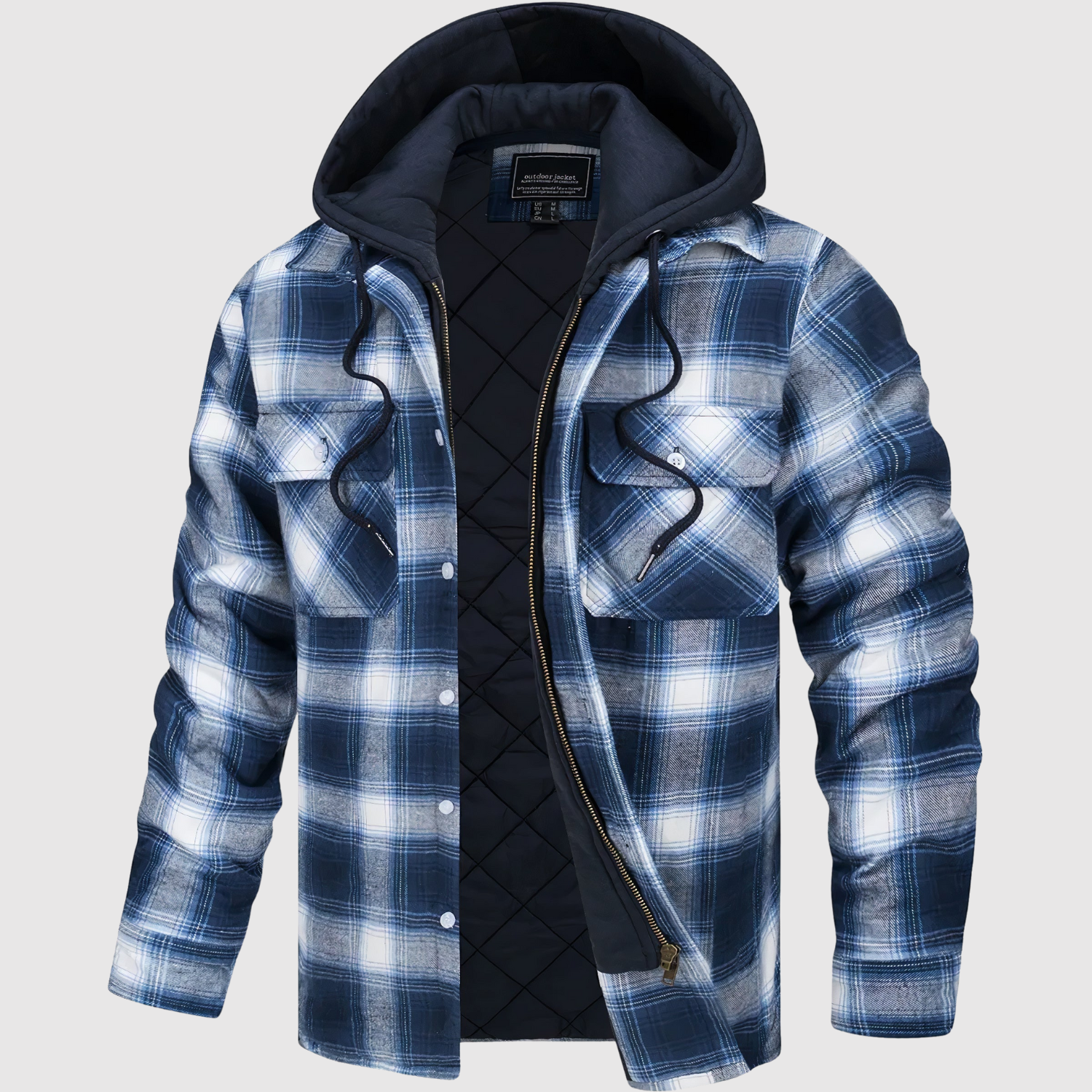 Ta wełniana kurtka w kratę łączy komfort, ciepło i styl. Idealna na chłodne dni, oferuje sportowo-elegancki wygląd z kapturem i miękką wewnętrzną podszewką, która zapewnia maksymalny komfort.